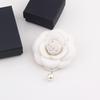 Vintage kaméliová korsážová brož Elegantní brož na kravatu s přívěskem z imitace perly Dámský oblek Košilová spona na límec Smuteční brože