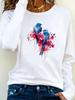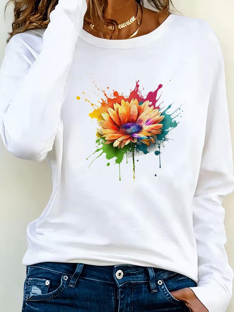 (Asian Size) watercolor flower 90s Clothing Casual Tee Lady Printed o-neck Long Sleeve T Shirt Women Female Fashion Top Graphic T-shirts