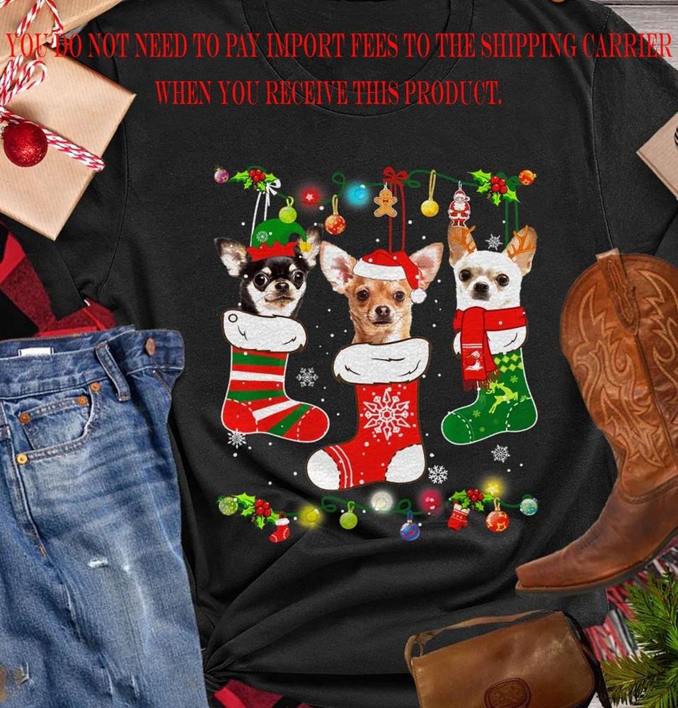 Cute Christmas T-shirt Dogs In The Sock Gift For Dog Lovers BO145 Unisex T-Shirt