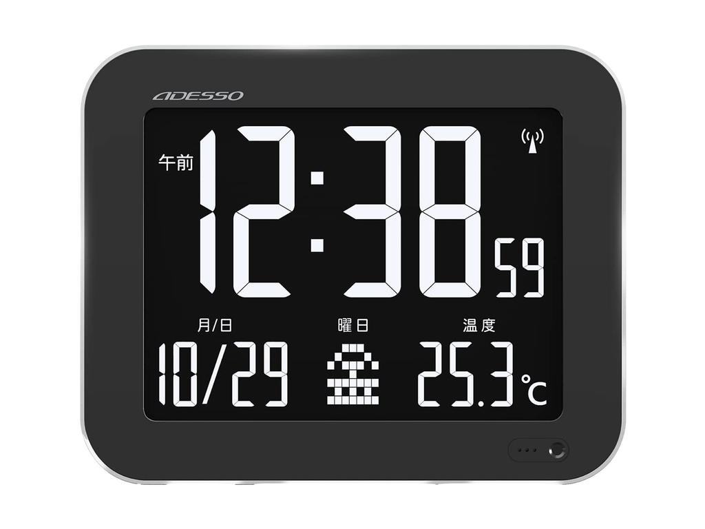 ADESSO Digital Clock, Stylish Wall Clock, Radio Controlled, Large, Suitable for Wall or Table Use, Date Display, Temperature, Alarm, Black