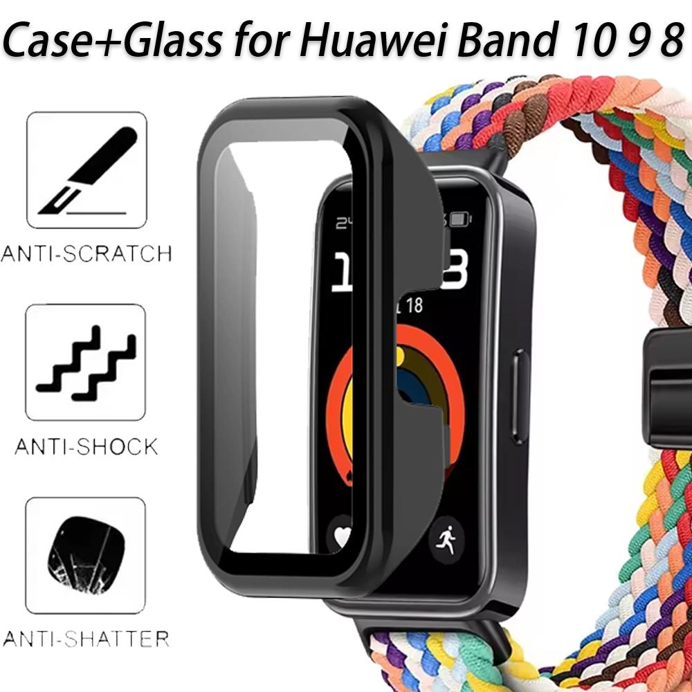 Case+Glass for Huawei Band 10 9 8 Anti-falling HD Screen Tempered Glass Film Protective PC Shell for Huawei Band 9 10 Cover Case