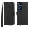 DIERFENG DF-03 For Samsung Galaxy S26+ Case Lines Imprint Wallet Leather Phone Cover with Wrist Strap