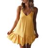 Sexy Women Dress Solid Color Sleeveless Deep V Neck Ruffle Hem Loose Mini Dress for Party