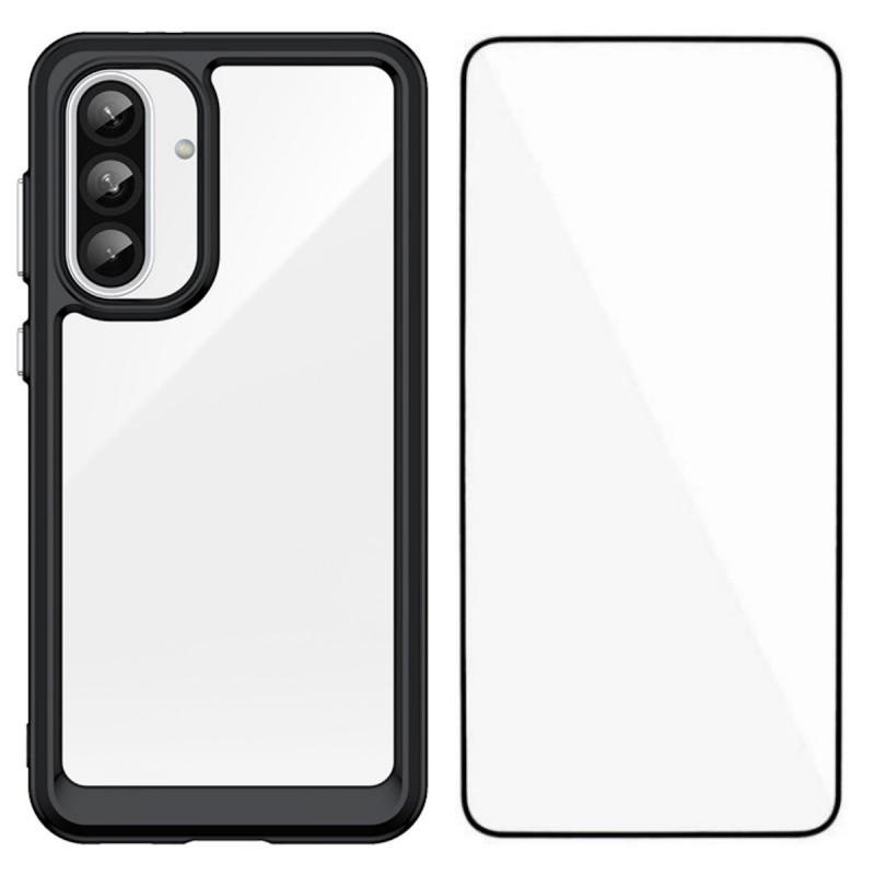 For Samsung Galaxy A37 5G Phone Case WANLONFENG XC Series TPU Acrylic Cover with Tempered Glass (Big Lens Hole)