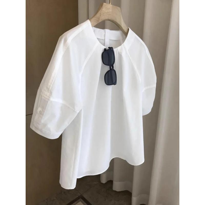 French Style Quarter-sleeved T-shirt for Women Summer Loose Plaid Top