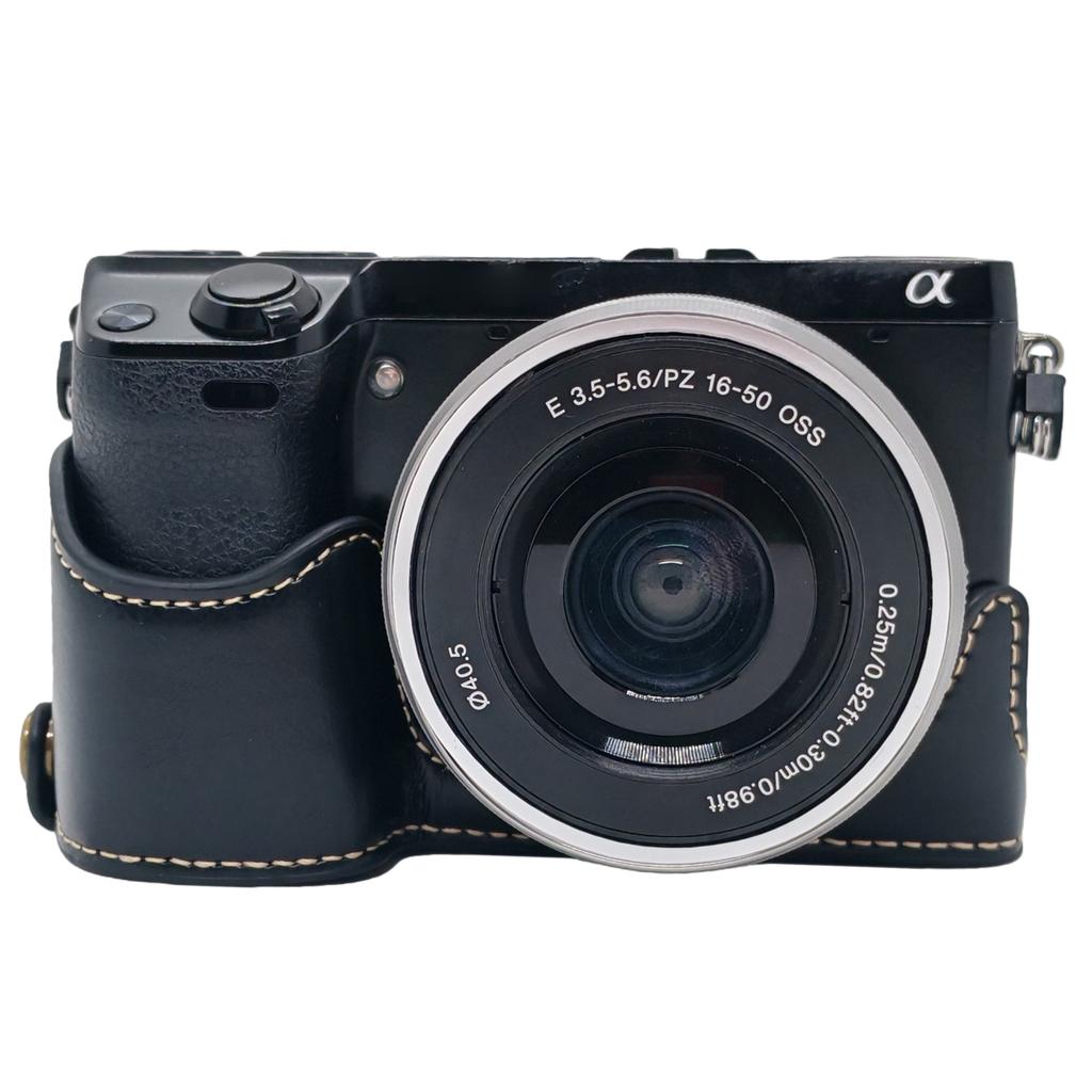 For Sony NEX-7/NEX-6 PU Leather Camera Case Battery Opening Design Half Body Cover with Hand Strap