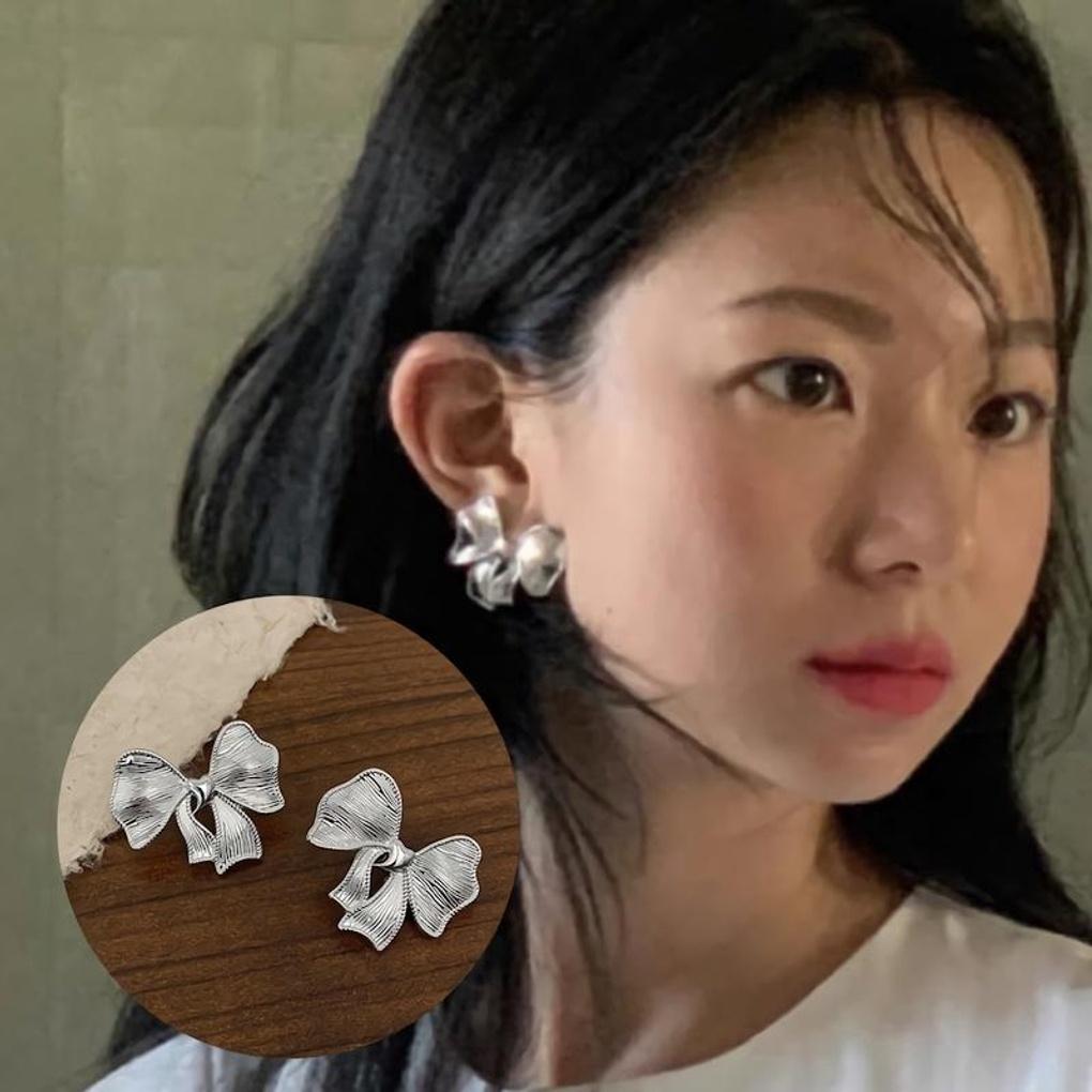 Women's 925 Silver French Big Ribbon Earrings