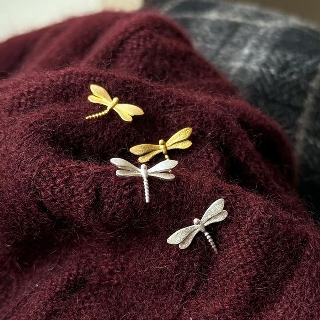 Women's Sterling Silver Dragonfly Simple Minimalist Earrings