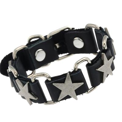 Star PU Leather Bracelet Goth Adjustable Punk Alloy Gift Unisex Hip Hop Fashion Jewelry Cuff Bangle