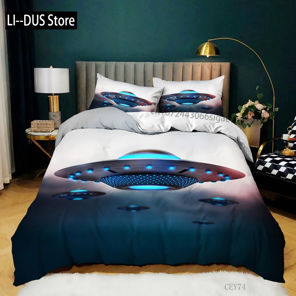 Sada povlaku na přikrývku na postel King z mikrovlákna s motivem vesmírné lodi a sci-fi, ložní souprava s astronautem a vesmírnou lodí na sněhové hoře, povlak na přikrývku