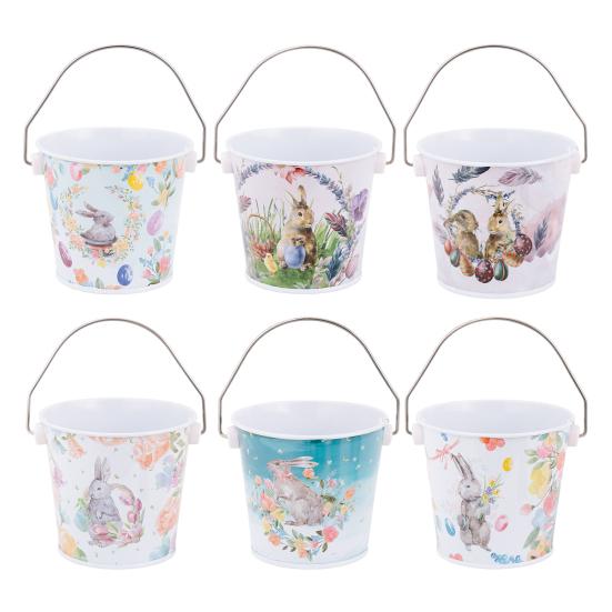 Tento vysoce kvalitní kovový úložný kbelík má odolný povrch odolný proti korozi a vnitřní stěnu pokrytou bílou barvou pro snadné čištění.. Každé vědro dorazí s jedinečným, ručně malovaným vzorem ve stylu akvarelu, který zobrazuje okouzlující velikonoční motivy, jako jsou králíčci, barevné květiny, vajíčka a zeleň, a dodá tak vašemu dekoru svěží a přírodní nádech..