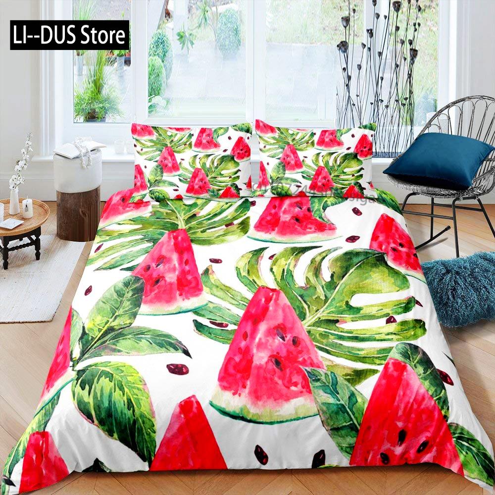 Watercolor Watermelon Duvet Cover Sets King Boys Girls Fruit Print Comforter Cover Sets 3PCS With 2 Pillowshames Bedroom Decor