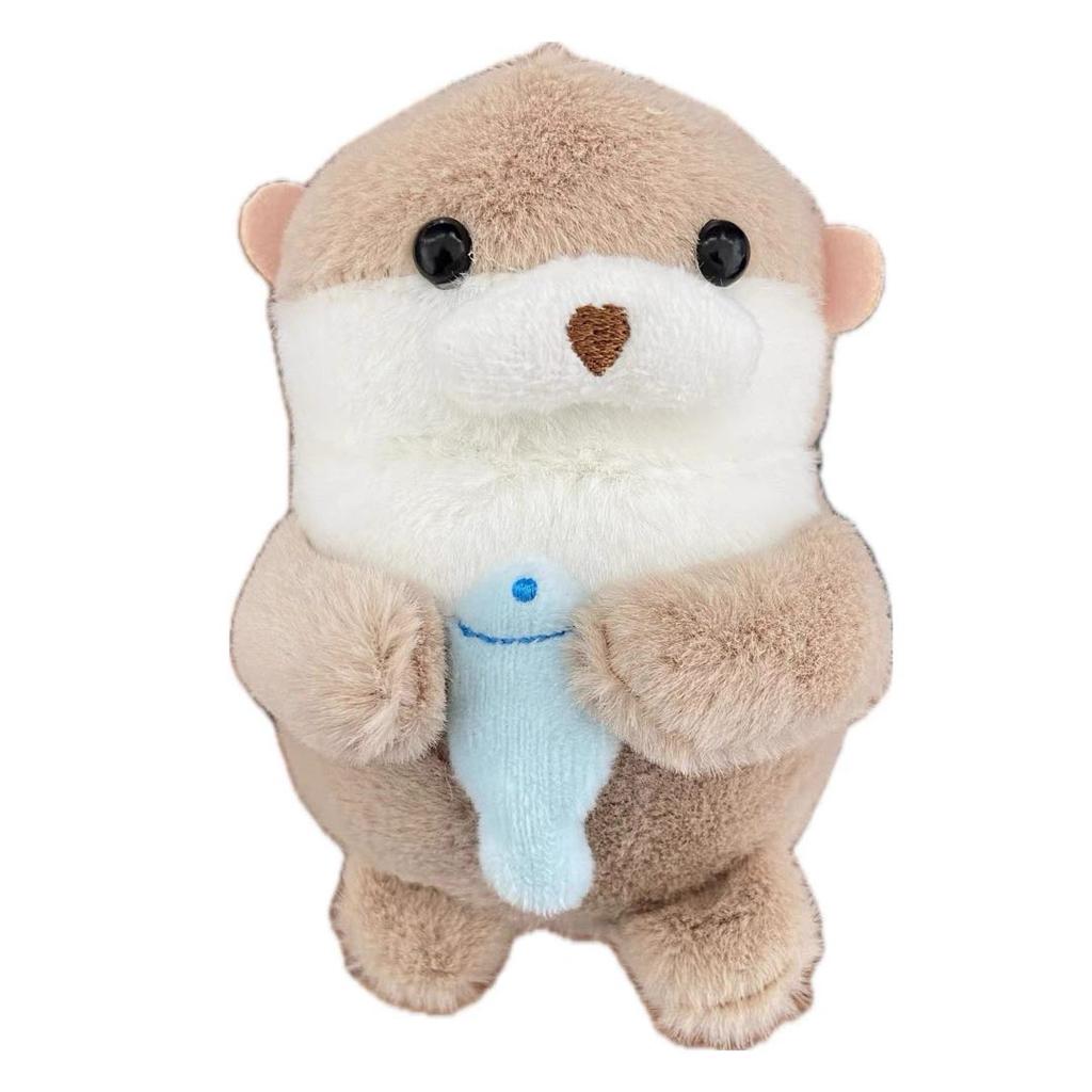 Cute Otters Holding Fish Plush Doll Keyrings Lightweight Hanging Pendant Props For School Bag Key Wallet Doll Toy Gifts 11cm
