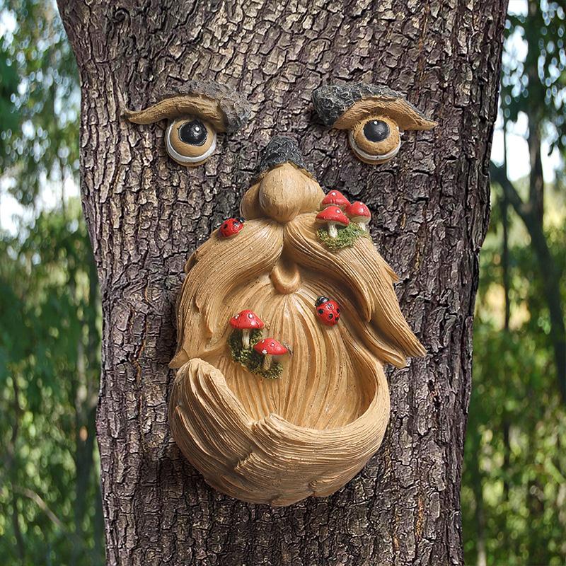 Tree Face Hanging Bird Feeder Sculpture Resin Craft Ornament Garden and Landscape Decorative Items, Horticultural Ornaments