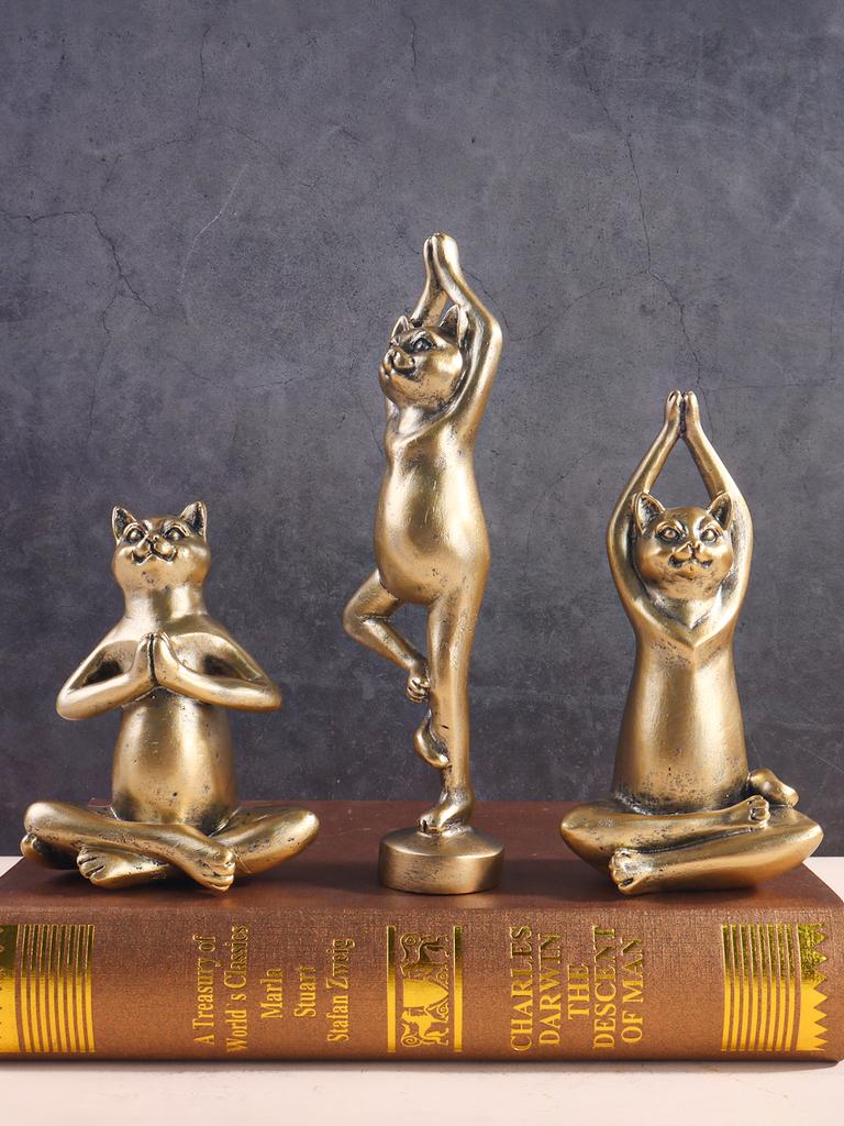 Yoga Cat Sculpture, Cat Statue Doing Yoga, Resin Craft, Home Decorative Display Pieces for Bedroom and Living Room
