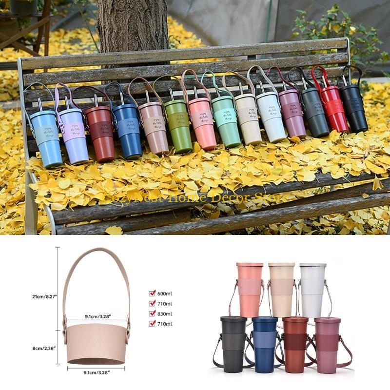 92MF PU Cup Sleeve for Hot Drinks Beverage Cup Bag with Handle Bottle Sleeve Bag