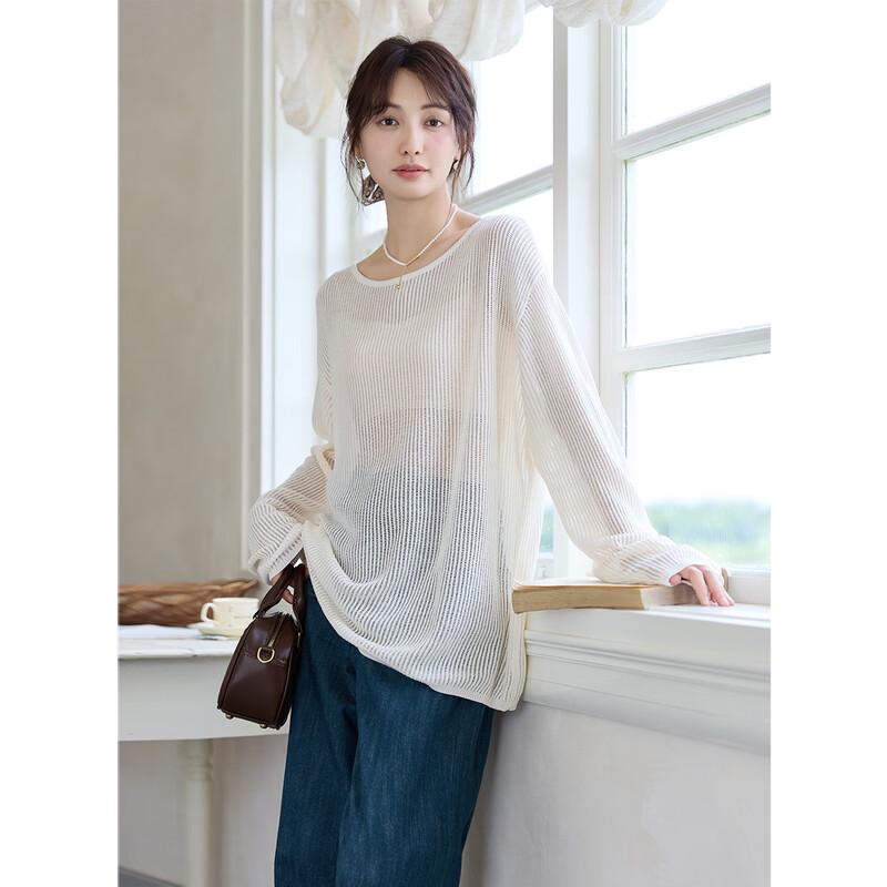 ITISF4 Women's Spring Loose Knit Round Neck Top
