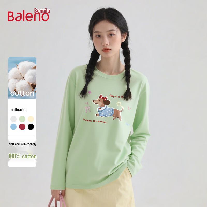 Baleno Women's Pure Cotton Long-Sleeve T-Shirt with Bow Puppy Print
