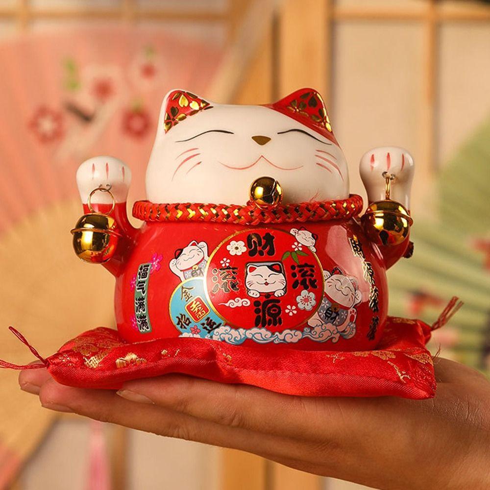 New 4.5 inch Lucky Cat Home Decorations Handmade Portable Fortune Cat Statue Ceramic Car Decorations Home Store