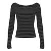 One-word Neck Striped Light and Slim-fit Long-sleeved Spice Girl Sexy Off-the-shoulder Simple Versatile and Thin Relaxed Top