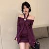One-shoulder Sexy Halter Neck Long-sleeved Gown for Women In Autumn Fitted Waist-hugging Skirt Pure Desire Tight Hip-wrapped Skirt