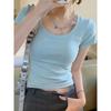 Short-sleeved T-shirt for For Women In Summer Wear Fitted Low Round Neck Collarbone Short Top Small Design Sense