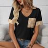 Women Loose Casual Blouse Sequins Patchwork Short Sleeve T-Shirt