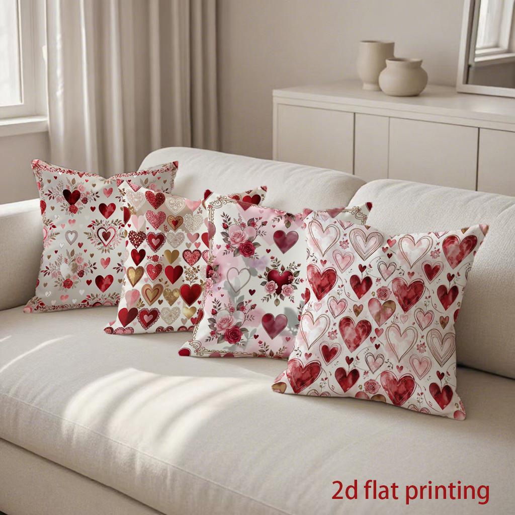 2D Heart & Rose Pattern Decorative Pillow Covers Pattern Cushion Cover Suitable For Sofa Bedroom Car Pillow Cover