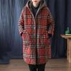 Zesílená teplá zimní bavlněná bunda Dámská nadměrná velikost Kostkovaný s kapucí Středně dlouhý kabát