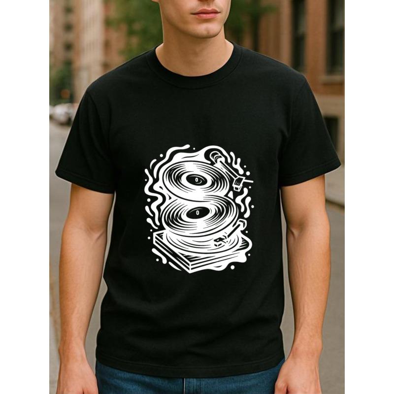 European sizes Men'S Print Short-Sleeved T-Shirt | Vinyl Records and Record Players Theme, Casual Loose Fit, All-Season, Breathable Fabric