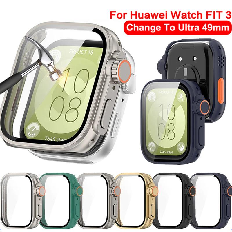 PC Case+Glass For Huawei Watch Fit 3 Smartwatch Change to Ultra Screen Protector For Huawei Fit 3 Upgrade to Ultra2 Accessories