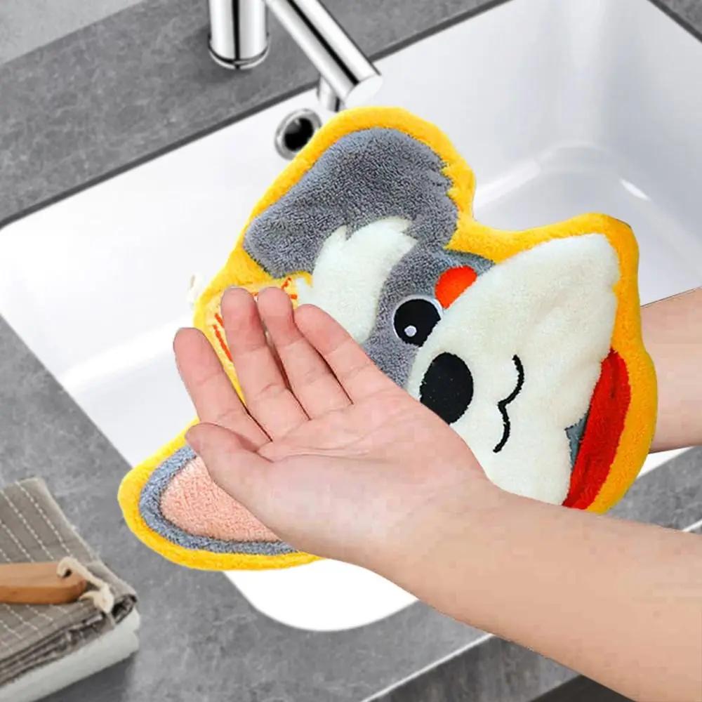 Kawaii Dog Shaped Hand Towel Hanging Cloth for Bathroom Soft Absorbent Hand Towel Cartoon Dog Kid Towel Kitchen Handkerchief