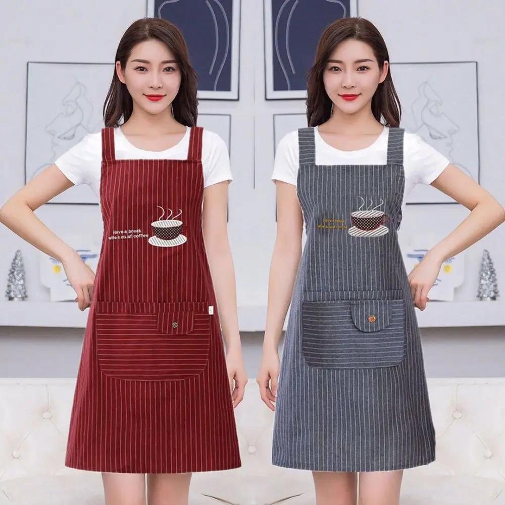 Fashionable Cotton Women Overall Apron Sleeveless Anti oil Cooking Smock Simple Stripe Watching Cooking Work Uniform