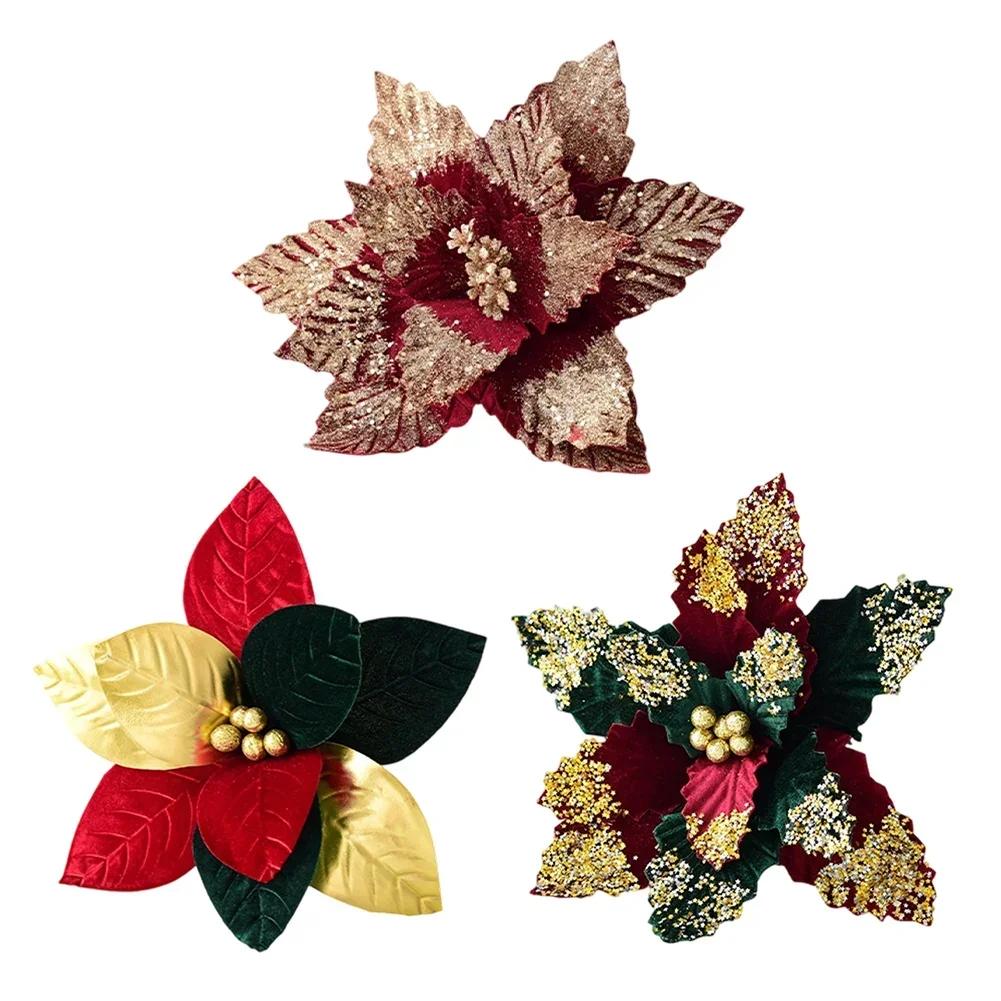 3pcs Christmas Decorative Felt Fabric Flower 30*20cm Vibrant Christmas Tree Decor Artificial Poinsettia Flowers Holiday Decor