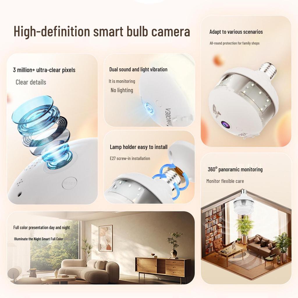 V380 E27 Wireless WiFi Panoramic Fisheye Bulb Camera