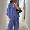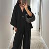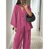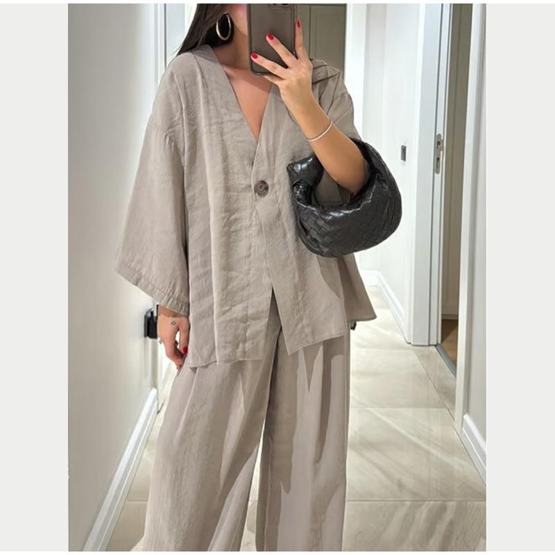 Causal Oversized Solid Pant Suit Women Single Button Long Sleeve V-neck Shirt Set Summer Casual Lady Streetwear