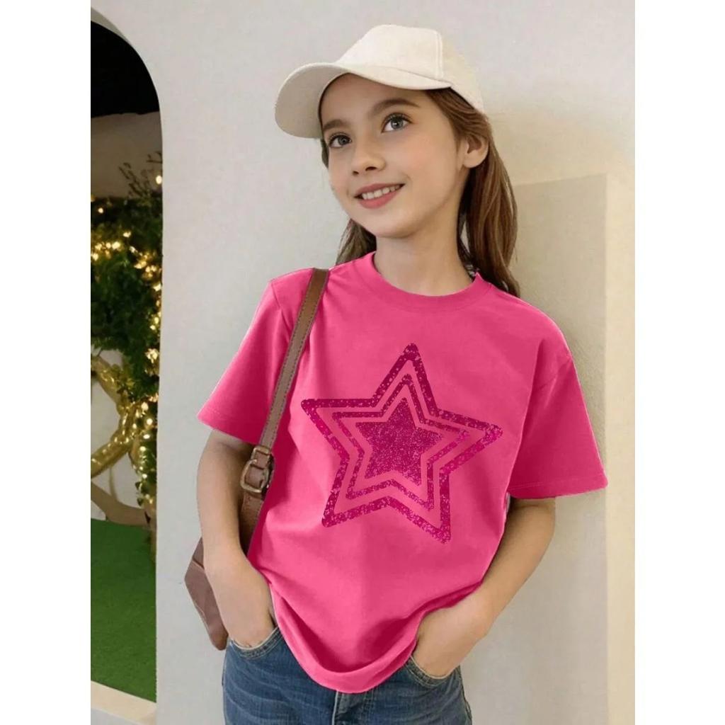 Summer New Children Tee Star Graphic Round Neck T-Shirt Girl Clothes Short Sleeve Outdoor Breathable Top Clothing