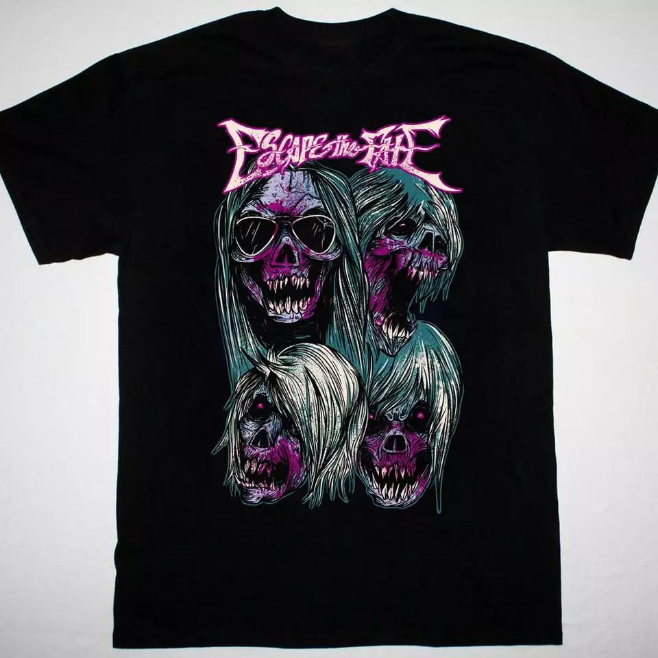 Popular Escape The Fate Band Four Skulls Black Cotton Full Size S-5XL SS Unisex T-Shirt