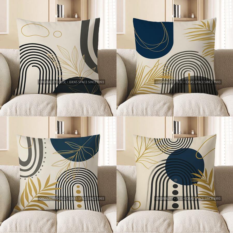 Home Decor Geometric & Leafy Abstract Pattern Pillow Cover Pattern Cushion Cover Suitable For Sofa Bedroom Car Pillow Cover