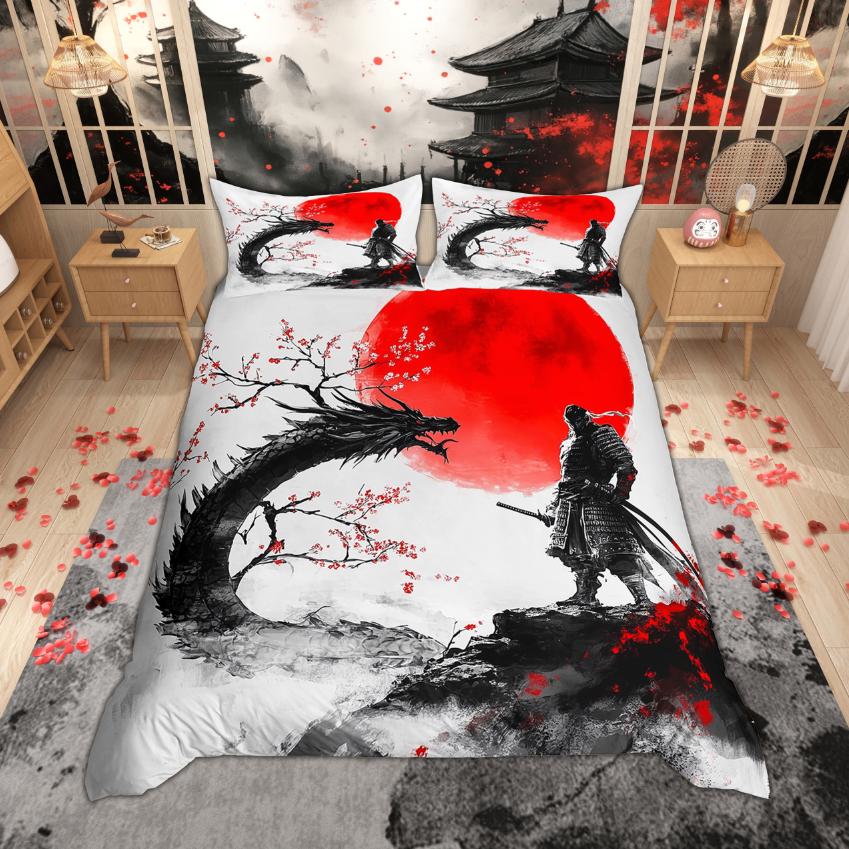 Homewish Japonský styl povlak na přikrývku Sada povlaků na polštář Tradiční Ukiyo-e sada povlečení Vintage sada povlaků na přikrývku s motivem mořské vlny