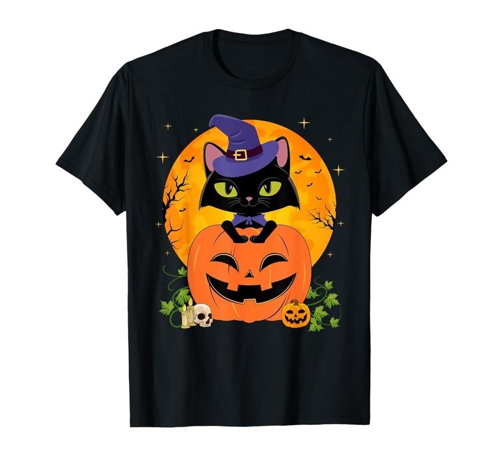 Halloween Witchy Black Cat And Pumpkin Black Unisex S-5XL AD578 Unisex T-Shirt