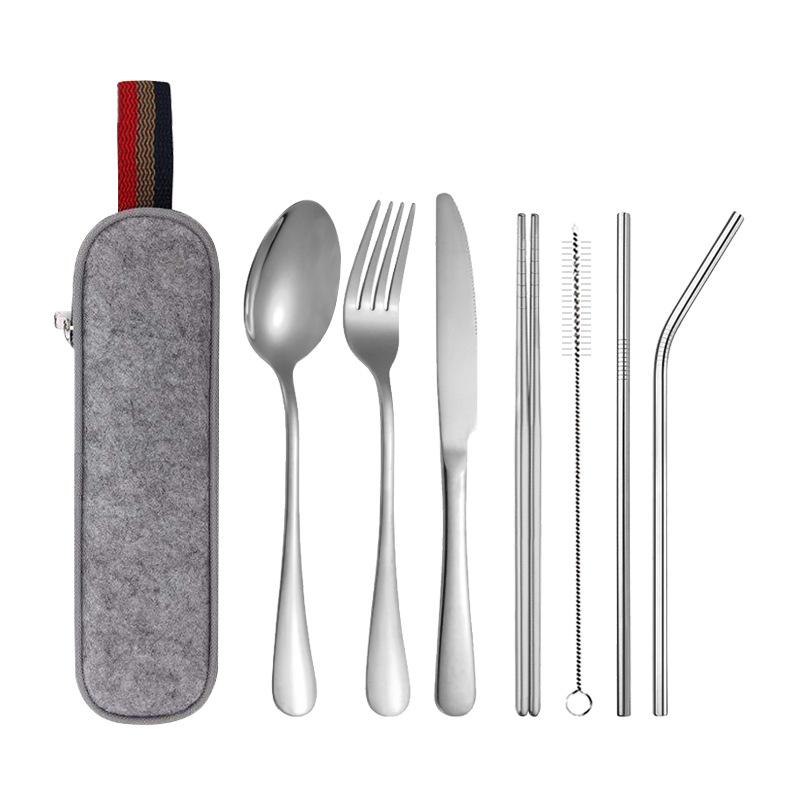 1SET/7PCS Stainless Steel Cutlery Set Straw Knife, Fork Spoon Chopsticks Outdoor Camping Travel Portable Tableware