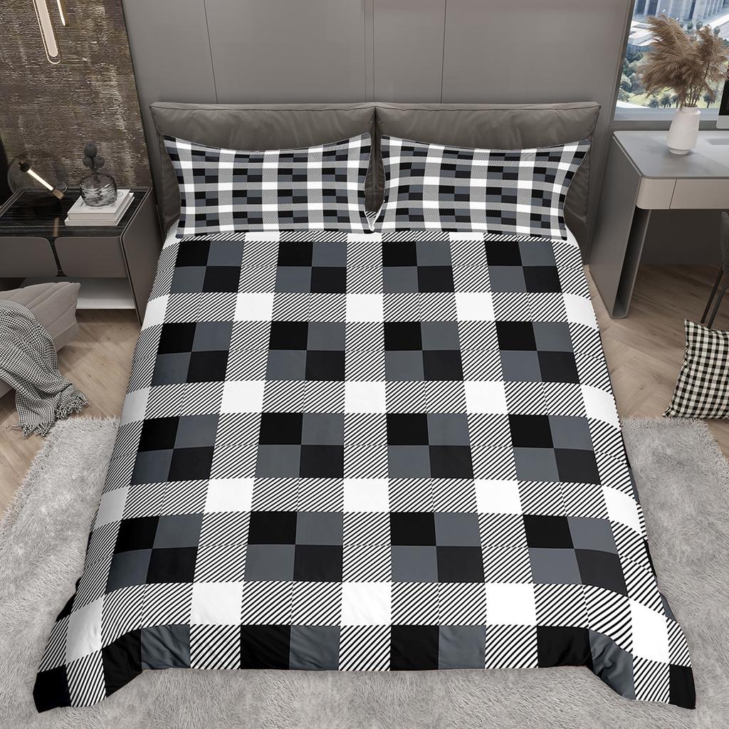 Homewish Colorful Plaid Duvet Cover Set Modern Minimalist Quilt Cover Set Geometric Checkered Bedding Set