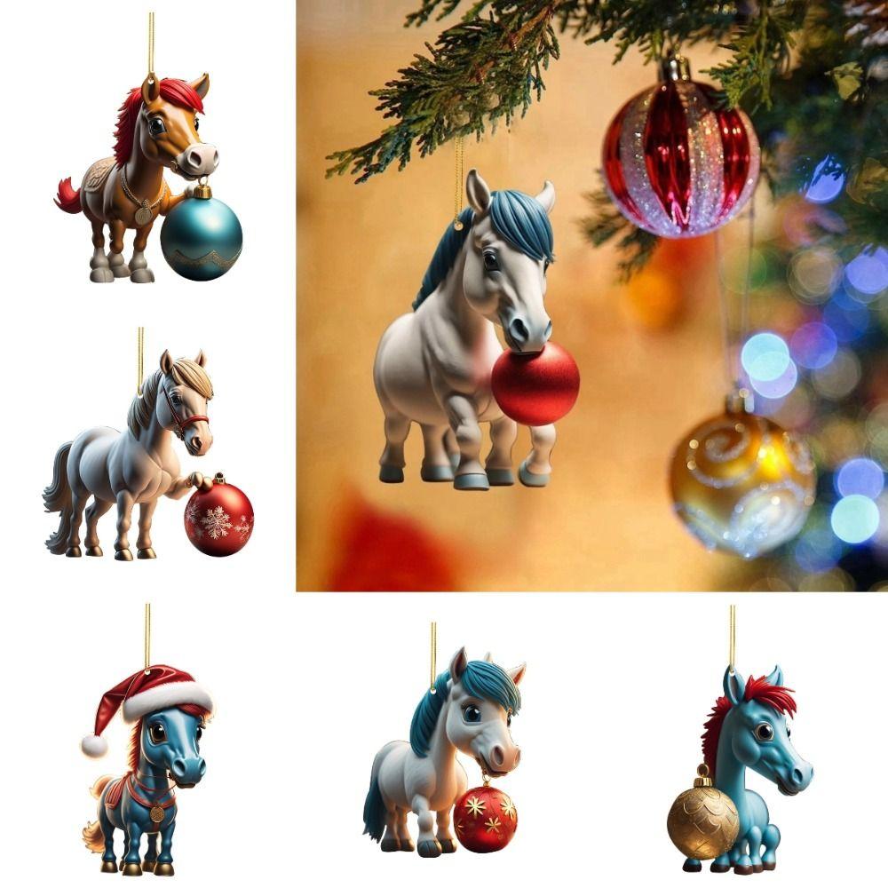 2D Flat Christmas Hanging Pendant DIY Accessories Acrylic Car Horse Pendant Multi-scene Xmas Tree Hanging Ornament Navidad Decor