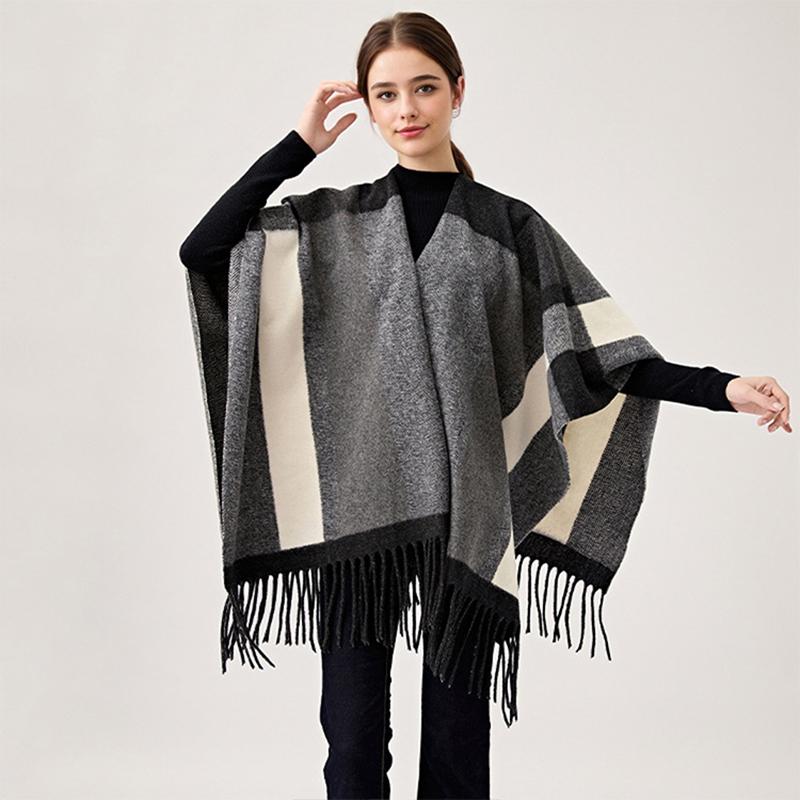 Women'S Travel Shawl Imitation Cashmere Tassel Slit Shawl Women'S Color Blocked Plaid Scarf Air-Conditioned Room Warm Cloak