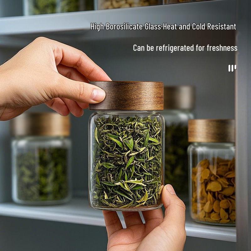 Transparent Borosilicate Glass Tea Canister: Airtight Storage Jar for Herbs, Snacks, Grains & More