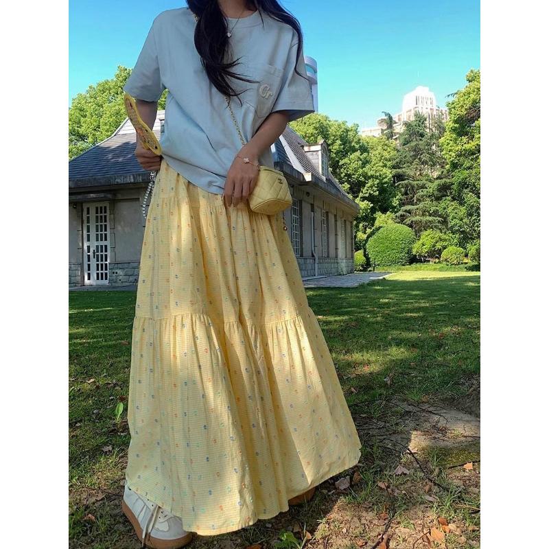 Women's New Patchwork Fashionable Solid Color Loose Slimming A-line Wide Swing Pastoral Style Skirt