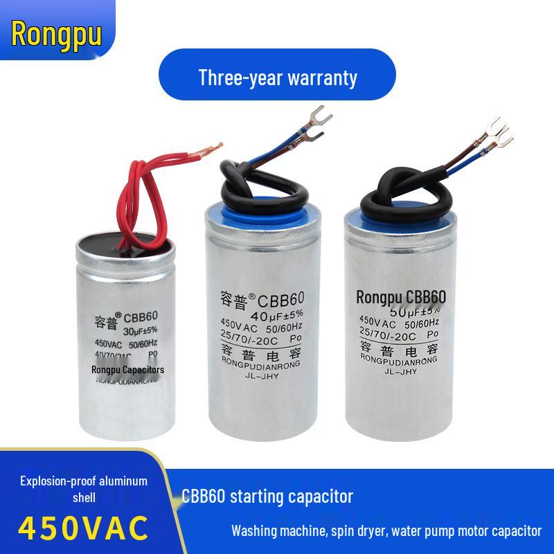 CBB60 Motor Capacitor for Washing Machine, Spin Dryer, Water Pump - 4/6/8/10/12/18UF, 450V Aluminum Case