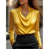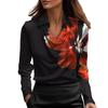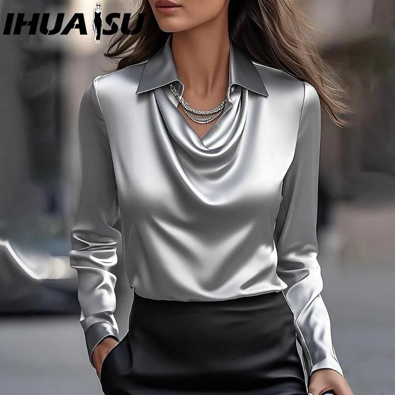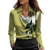 IHUASU Dámské Módní Ležérní Jednobarevné Tištěné Dlouhý Rukáv POLO Límec Halenky & Košile