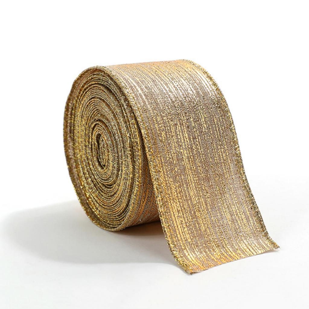 2m/2yard Christmas Ribbon Wire-Edged Woven Gold Glittery Christmas Ribbon for Christmas Tree Decorations Gift Wrapping DIY Bow